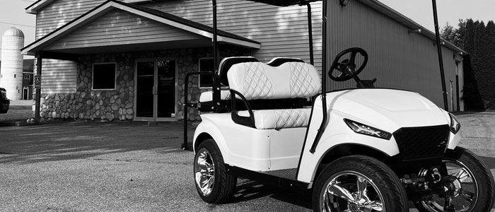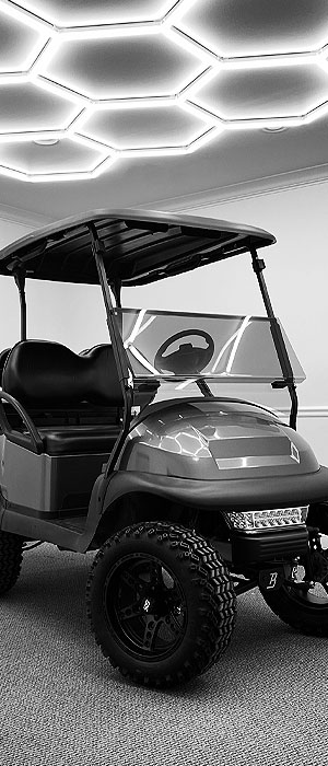 Your golf cart’s unique paint job or vinyl wrap and custom wheels can work together to create a polished and unified appearance. (Read: Golf Cart Makeover: Paint vs. Wrap – Which is Right for You?) Custom wheels can be the ideal final touch for your custom golf cart, whether you choose a striking color to go with your custom paint or a slick design to make a statement. Your golf cart will draw attention on the course or on the road thanks to the mix of custom paint and custom wheels.
