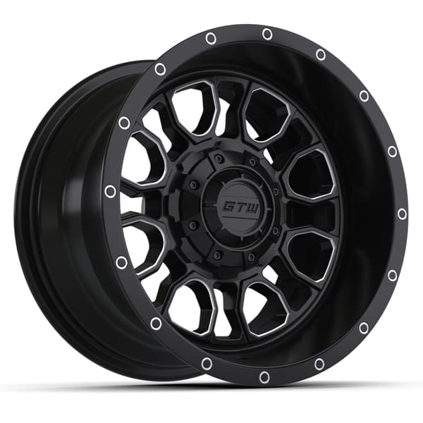 12″ GTW Volt Wheel in Black & Machined finish features a 12×7 size with 3:4 offset (ET -.25). Includes matching center cap; lug nuts sold separately. Be sure to order a full set of 4 wheels.