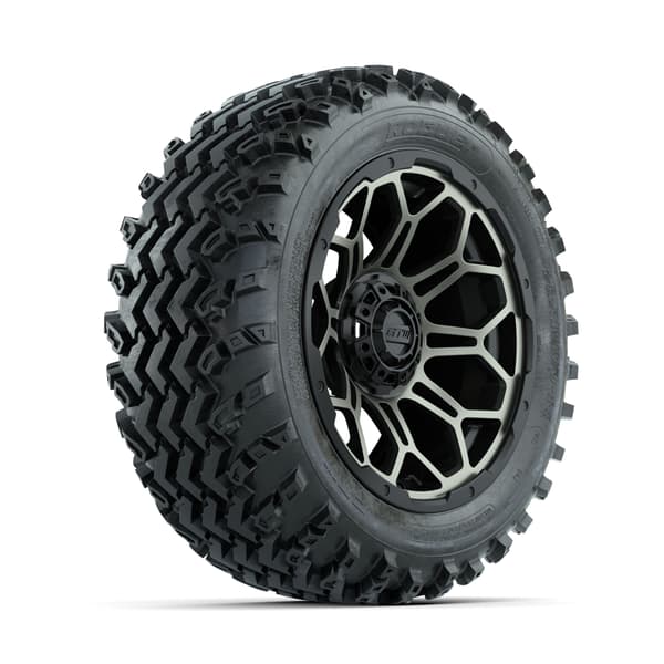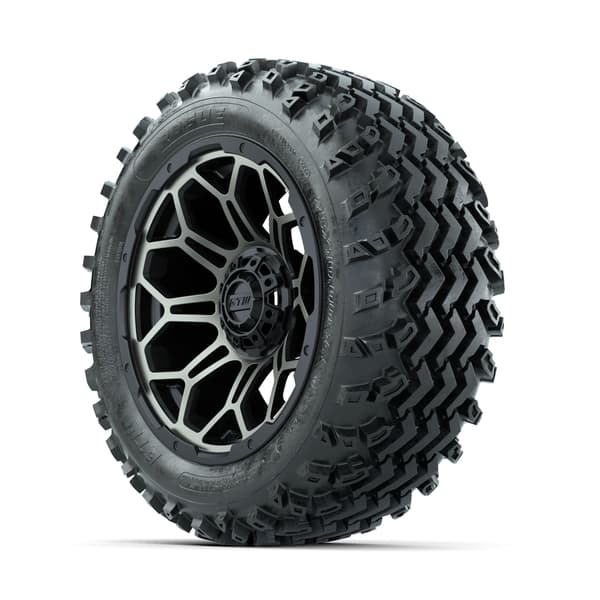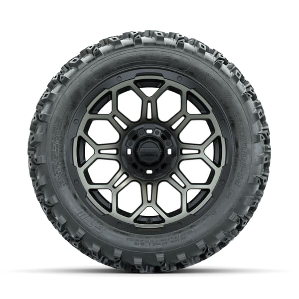 GTW Bravo Bronze/Black 14″ wheels with 23×10.00-14 Rogue All-Terrain Tires. Built for off-road and rugged terrain. Includes 4 wheels, 4 tires, and center caps. Requires minimum 3” lift kit. 4×101.6mm lug pattern. Tires mounted and inflated before shipping. Lug nuts sold separately.