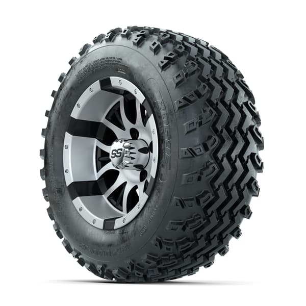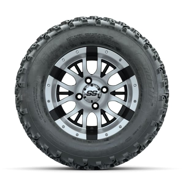 GTW Diesel Machined/Black 12″ wheels with 23×10.00-12 Rogue All-Terrain Tires. Includes 4 wheels, 4 tires, and center caps. All-terrain design with a machined/black finish. Requires a 3” lift kit and features a 4×101.6mm lug pattern. Tires are mounted and inflated before shipping. Lug nuts sold separately.