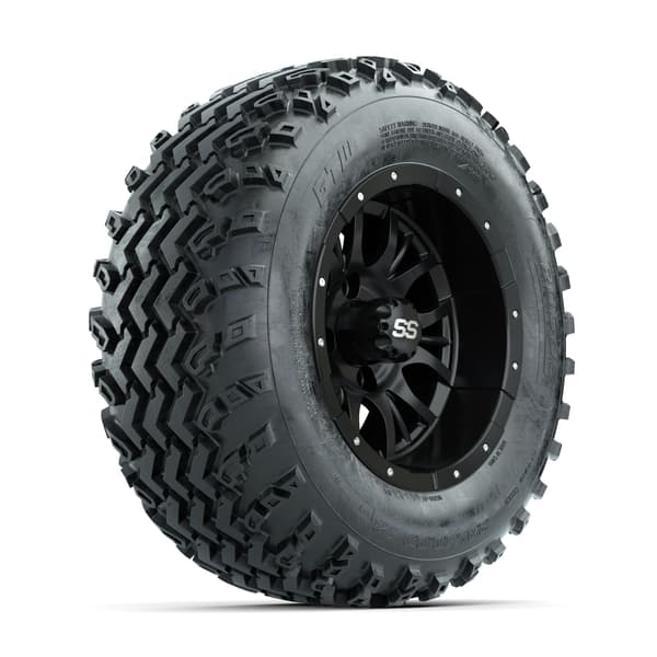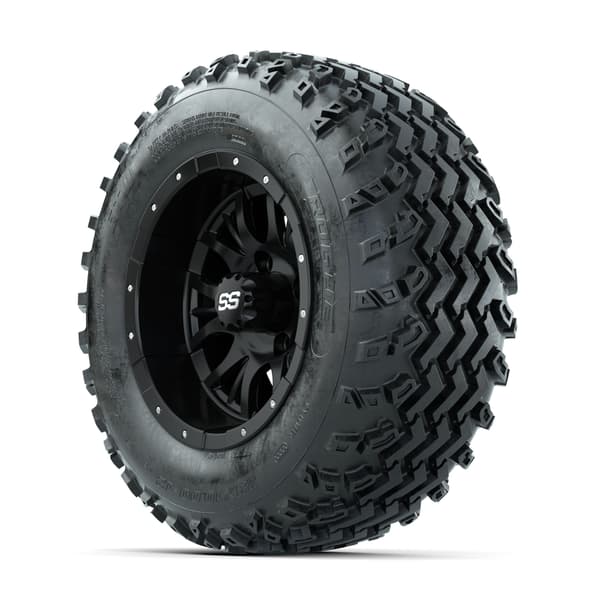 A set of (4) 12-inch GTW® Diesel Matte Black golf cart wheels Mounted on 23×10.00-12 Rogue All-Terrain Tires
