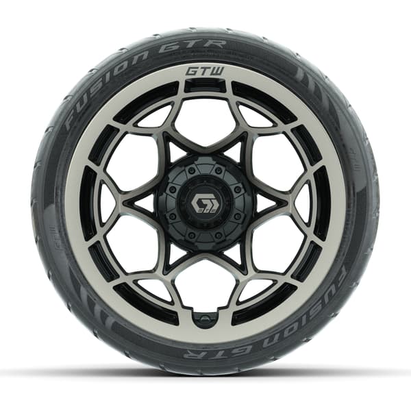 GTW® Nexus Gloss Black/Bronze 14″ wheels with 205/40-R14 Fusion GTR steel-belted street tires. This full set includes four 4-ply tires, color-matched caps, and stylish, high-performance design for street or course use. Lug nuts sold separately.