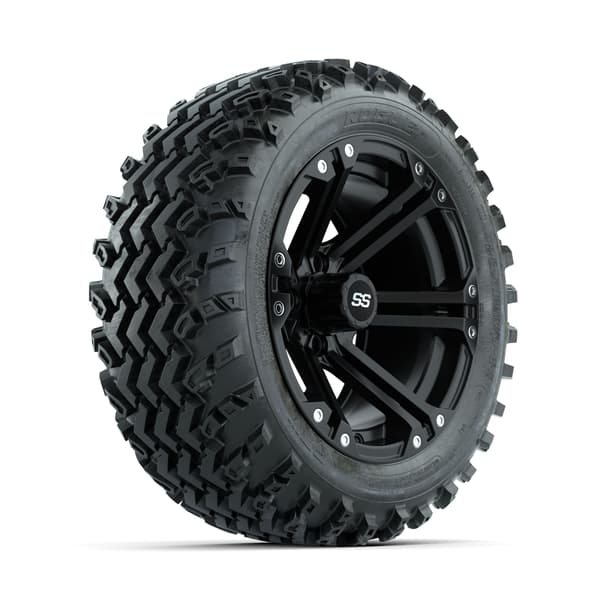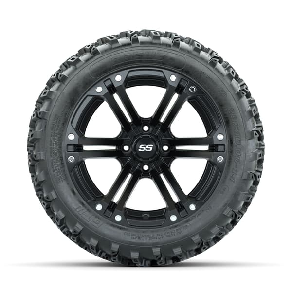 GTW Specter Matte Black 14″ wheels with 23×10.00-14 Rogue All-Terrain Tires. Ideal for off-road and rugged terrain. Includes 4 wheels, 4 tires, and center caps. Requires minimum 3” lift kit. 4×101.6mm lug pattern. Tires mounted and inflated before shipping. Lug nuts sold separately.