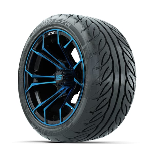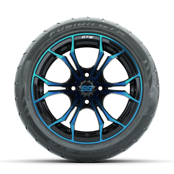 GTW Spyder Blue/Black 14 in Wheels with 225/40-R14 Fusion GTR Street Tires – Full Set
