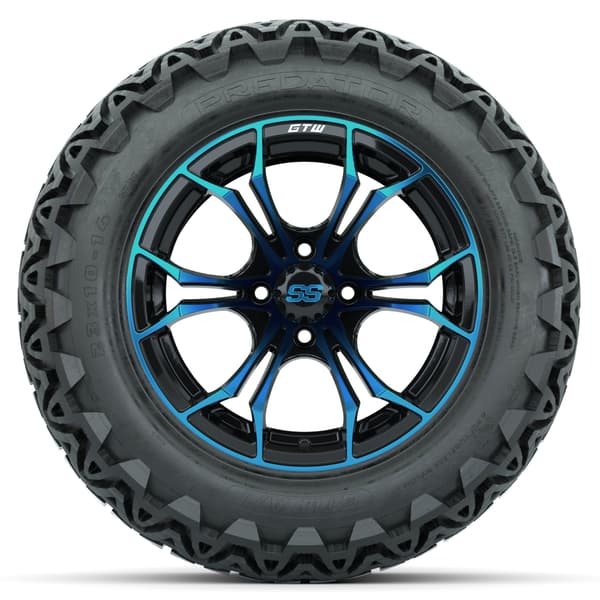 - (4) 14″ GTW Spyder Wheels / Blue & Black Finish / Offset: 3:4 (ET -.25)