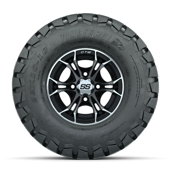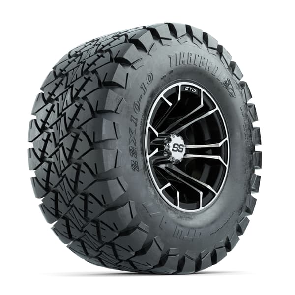 GTW Spyder Machined/Black 10 in Wheels with 22×10-10 Timberwolf All Terrain Tires – Full Set