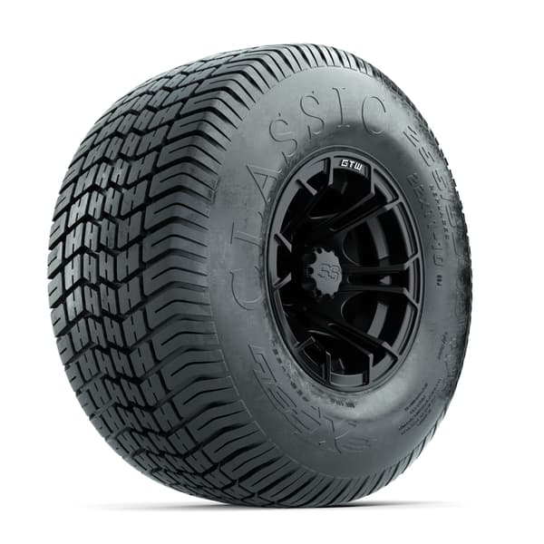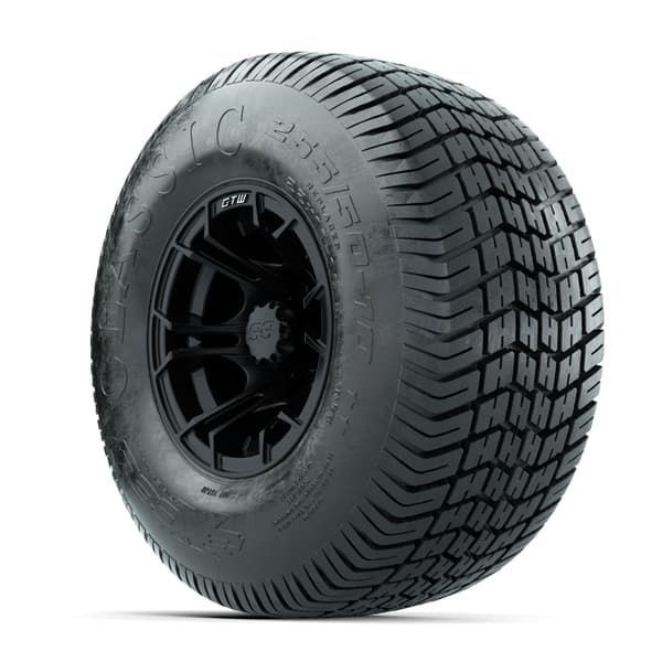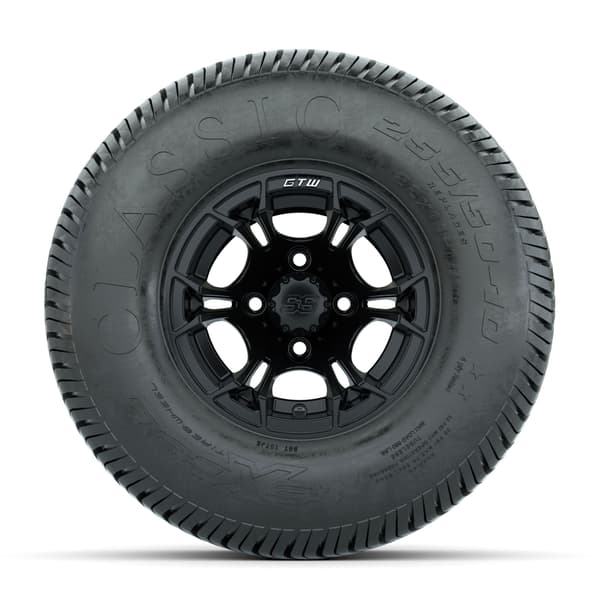 A set of (4) 10-inch GTW® Spyder Matte Black golf cart wheels Mounted on 22×11-10 Excel Classic Street Tires