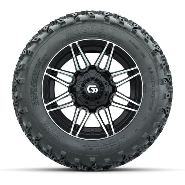 - (4) 12” GTW® Stealth Wheels / Gloss Black/Machined Finish / Offset: 3:4 (ET -.25)