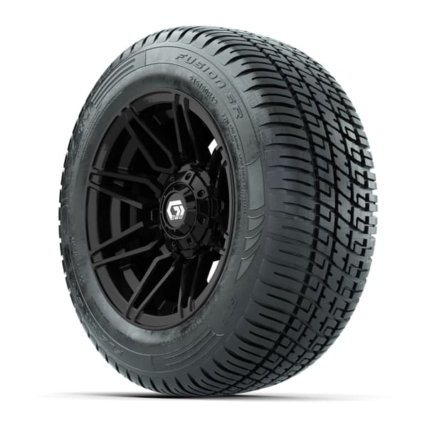 GTW® Stealth Gloss Black 12 in Wheels with 215/50-R12 Fusion S/R Steel Belt Radial Tires – Full Set