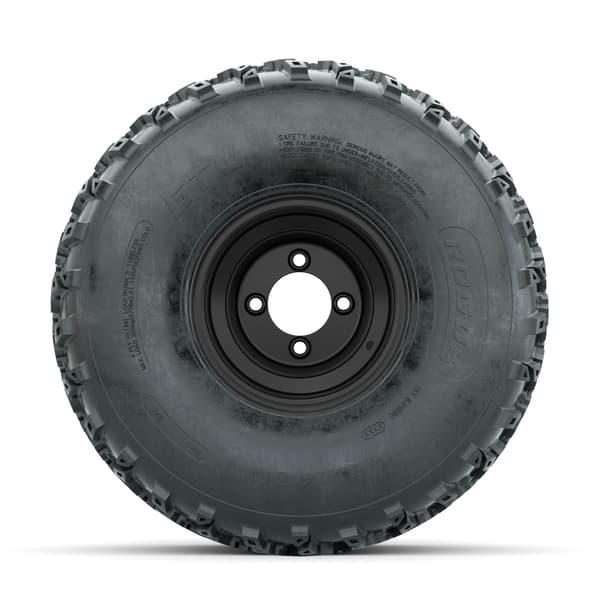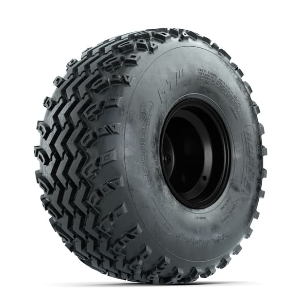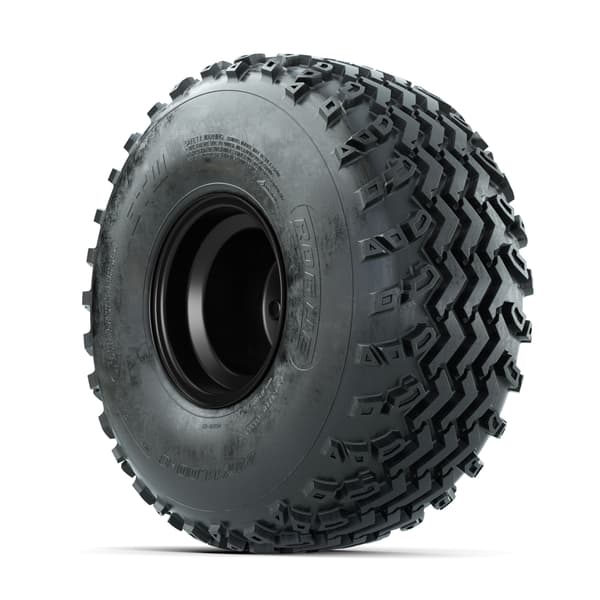 A set of (4) 8-inch GTW® Steel Matte Black golf cart wheels Mounted on 22×11.00-8 Rogue All-Terrain Tires