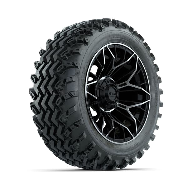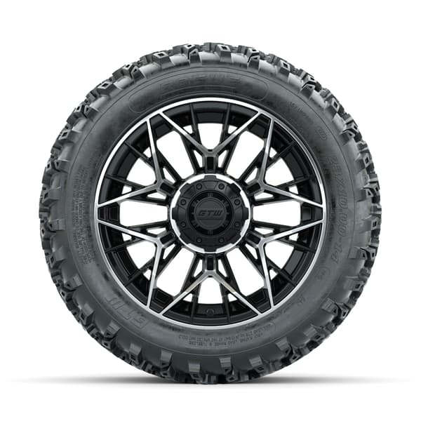 GTW Stellar Machined/Black 14″ wheels with 23×10.00-14 Rogue All-Terrain Tires. Built for off-road performance and rugged terrain. Includes 4 wheels, 4 tires, and center caps. Requires minimum 3” lift kit. 4×101.6mm lug pattern. Tires mounted and inflated before shipping. Lug nuts sold separately.