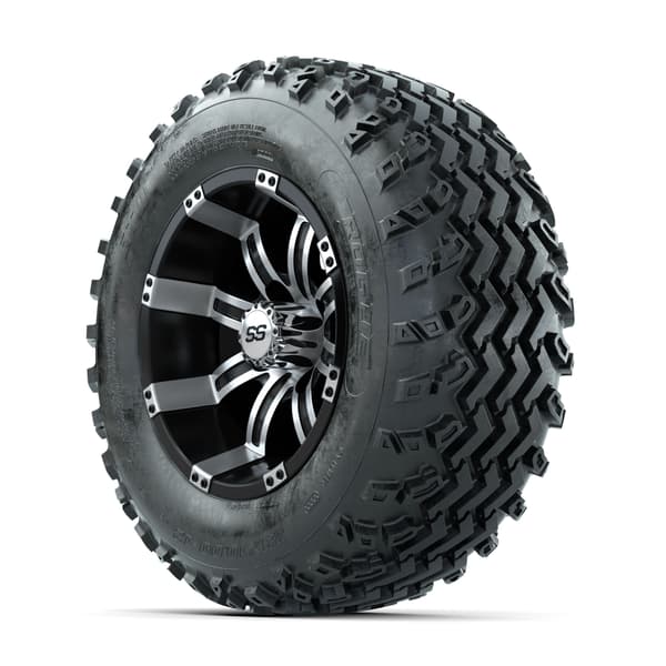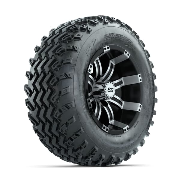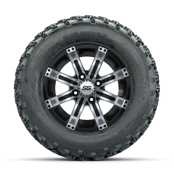 GTW Tempest Machined/Black 12″ wheels with 23×10.00-12 Rogue All-Terrain Tires. Includes 4 wheels, 4 tires, and center caps. Machined/Black finish with a 4×101.6mm lug pattern. Requires a 3” lift kit and pre-mounted, inflated tires for easy setup. Lug nuts sold separately.