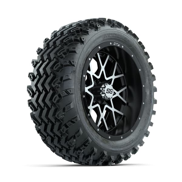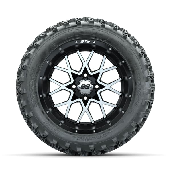 GTW Vortex Machined/Matte Black 14″ wheels with 23×10.00-14 Rogue All-Terrain Tires. Built for off-road and rugged terrain. Includes 4 wheels, 4 tires, and center caps. Requires minimum 3” lift kit. 4×101.6mm lug pattern. Tires mounted and inflated before shipping. Lug nuts sold separately.
