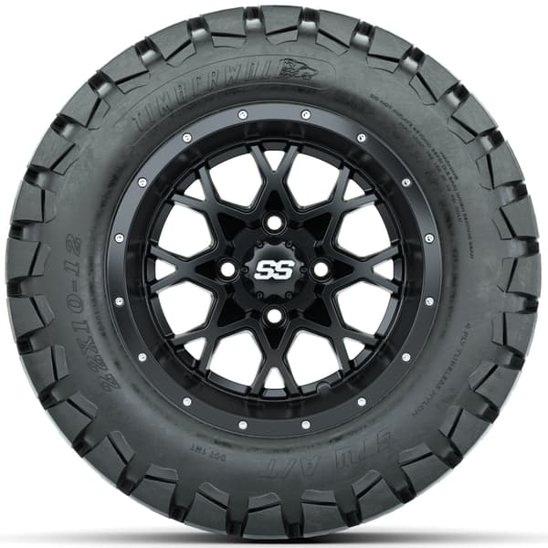 - (4) 12″ GTW Vortex Wheels / Matte Black Finish / Offset: 3:4 (ET -.25)