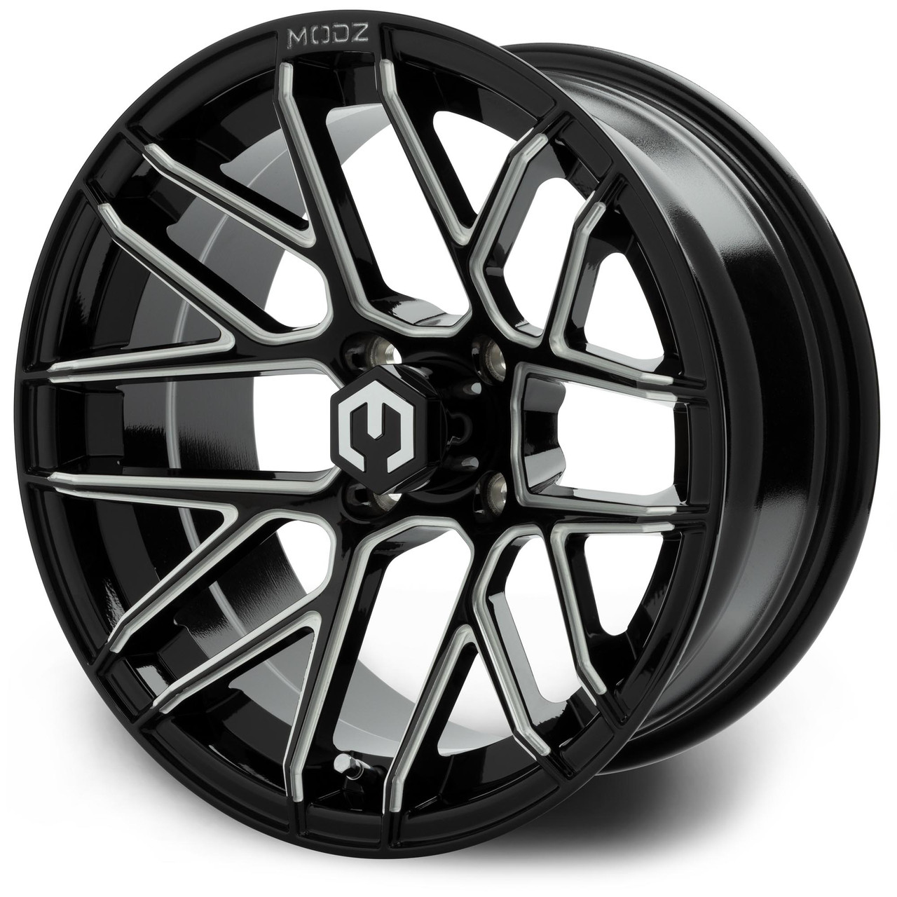 MODZ® Matrix Glossy Black with Ball Mill 15″ Golf Cart Wheel