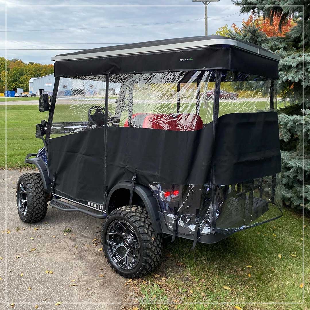 Extend your Advanced EV Advent golf cart’s versatility to all seasons with a Golf Cart Enclosure / Cover specifically designed to protect your cart from the elements while preserving the value of your investment.