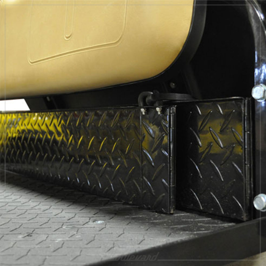 (Expandable Cargo Box) Now you can have your seat and a cargo box too! GTW® Expandable Cargo Box unfolds to create a secure cargo bed when you need it, and then folds and locks out of the way when you don’t. Note: Compatible with the GTW® Mach Series MadJax® Genesis 150 rear flip seat only.