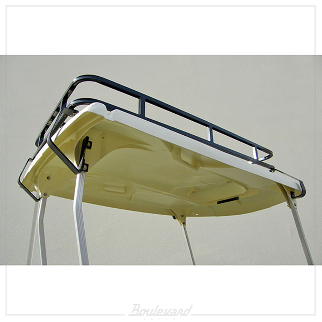 The only roof rack storage system of its kind on the market. Great for hunting, storage, hauling, luggage and more. Fits Yamaha G22. Heavy duty black powder coated steel construction. Rack measures 5″H x 32″W x 52″L. Easy to install with custom brackets designed for each roof style. Includes roof rack, installation hardware and mounting brackets. Some drilling required.